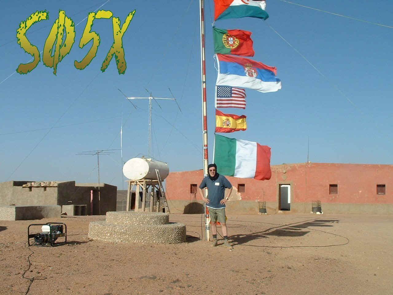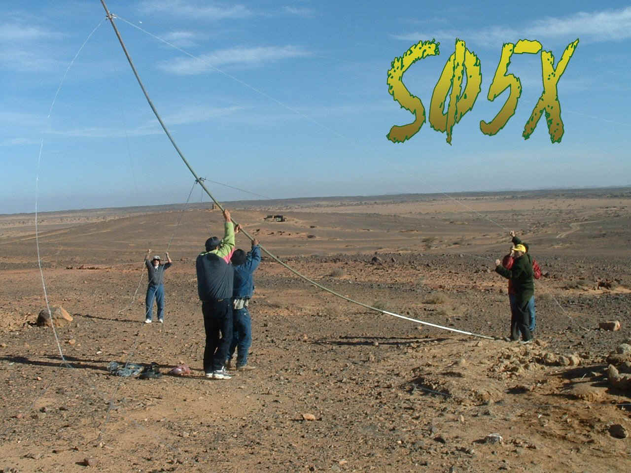 SØ5X Western Sahara Multi Internacional DX pedition 2003 Este ano algumas expedições marcaram sem duvida a actividade de DX, algumas entidades cairam do "ranking" dos "Most wanted" é o caso do WESTERN SAHARA que baixou a tabela dos 100 mais procurados. O sucesso des Expedição foi de tal maneira tão elevado que é considerada uma das candidatas á nomeação da Expedição do Ano 2003. Formada por uma equipe representado 6 países (Rep.Árabe Saharaui Democrática, Espanha, Portugal, Itália, Estados Unidois da América e Jugoslávia/Sérvia) onde constam excelentes operadores conseguiu em apenas 4 dias de operação 31.111 comunicados cobrindo todas as bandas de 6 a 160 Metros. A Sahara Desert International Radio DX’pedition 2003 teve como objectivo principal garantir uma nova entidade a muitos Dxers, proporcionar uma experiência inesquecível aos seus operadores e divulgar a todo a situação difícil do povo berbere sarahui, esta Foi a primeira Expedição de âmbito internacional ao Western Sahara. Situado no continente africano cobrindo uma larga área do Deserto do Sahara, entre o triângulo formadoi pela Argélia, Marrocos e Mauritânia fica a RASD Rep.Árabe Saharaui Democrática. Considerado por muitos Dxers Asiáticos e Norte Americanos "País mais procurado!", para os Europeus apenas em algumas bandas, o Western Sahara continua a exercer uma atracção a todos os operadores que gostam de DX. Talvez pela sua localização, pela difilculdade de acessibilidade, pela falta de infraestruturas, pela situação económica e sobretudo pela sua situação de conflito militar com o país visinho Marrocos.