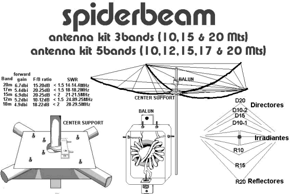 60 2,32 ------------------------------------------------------------ Antena SPIDERBEAM Eis uma excelente opção para o Expedicionário mais exigente.trata-se de uma antena tipo YAGI de 3 elementos sem Traps. Hoje em dia em que muito se discute sobre as capacidades e os rendimentos das antenas e para aqueles que são adeptos destas antenas esta é uma excelente opção.